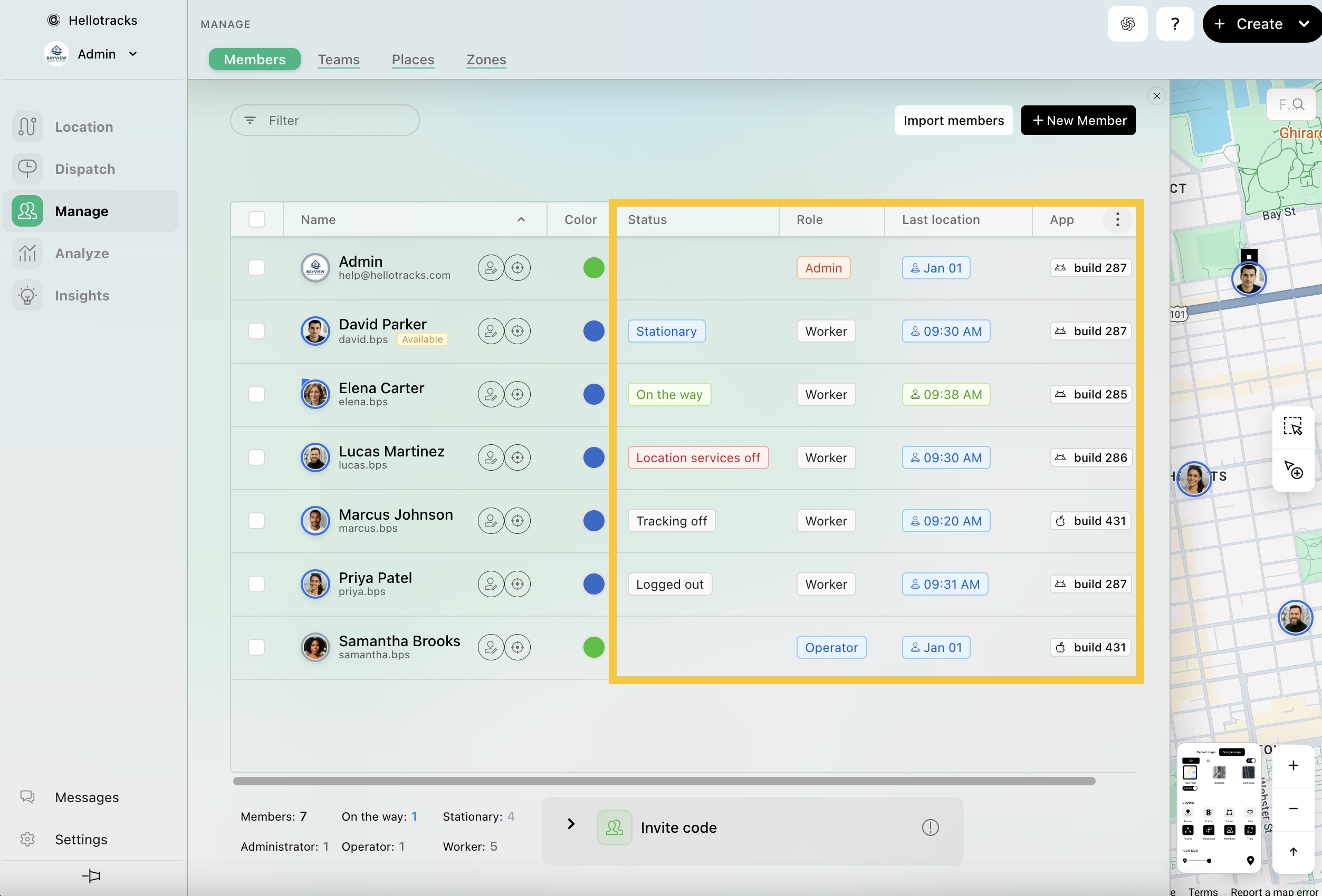 Paso 2: Desde aquí, puedes verificar el estado, la última locación y la versión de la aplicación móvil de Hellotracks instalada en su dispositivo.