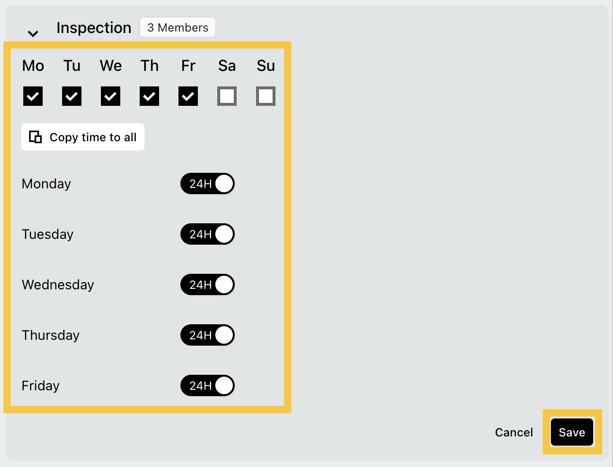 Paso 3: Establece las horas de trabajo del equipo, luego haz clic en Guardar (Save).