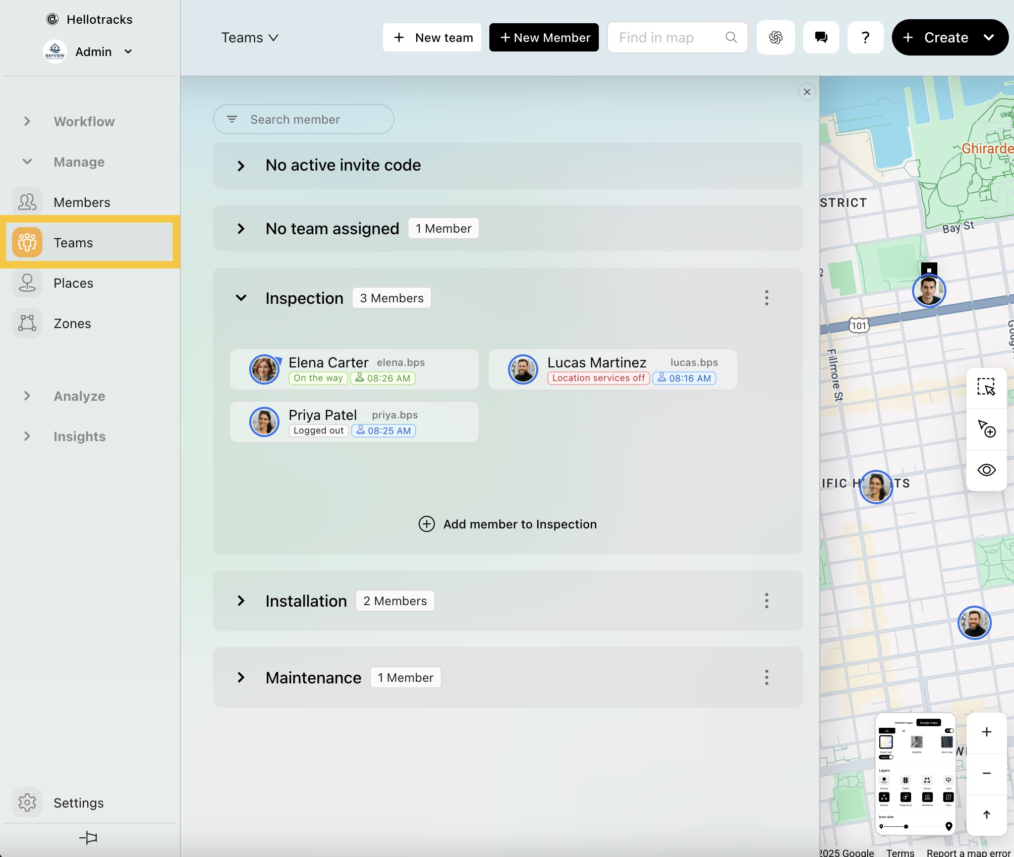 Paso 1: Ir a Equipos (Teams) desde la sección Administrar (Manage) del menú principal.